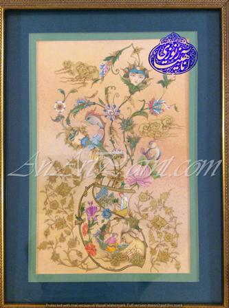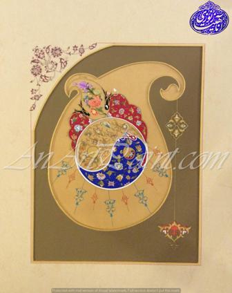 طرح : تلفیق گل و مرغ ، مینیاتور ، تذهیب و تشعیر