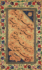 Chalipa is a panel in the Nastaliq script. There are two important panels in the Nastaliq calligraphy : Chalipa & Siah Mashgh . Chalipa consists of four diagonal hemistiches of a poem , which has clearly a moral ethic and poetic theme .