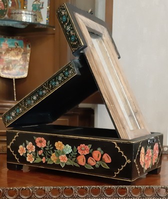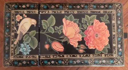 سطح رویی جعبه چوبی منقش به گل و مرغ